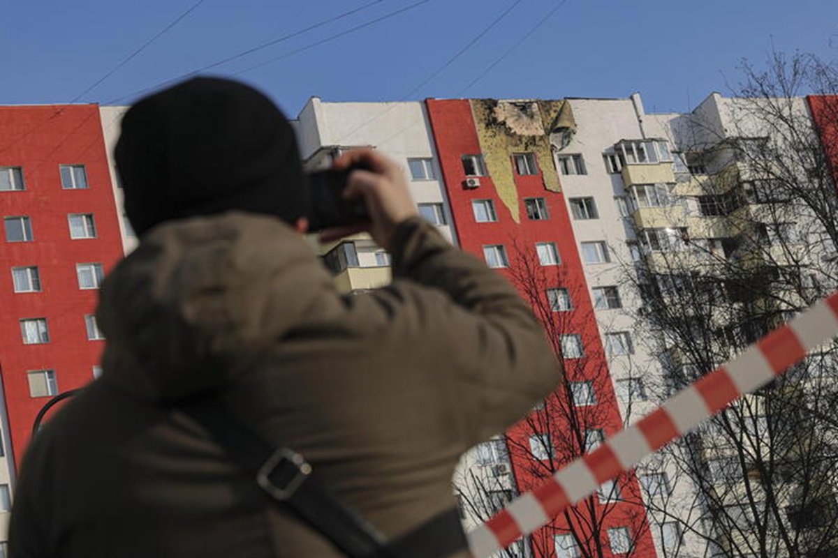 Uno dei palazzi colpiti dai droni ucraini (Foto Ansa)