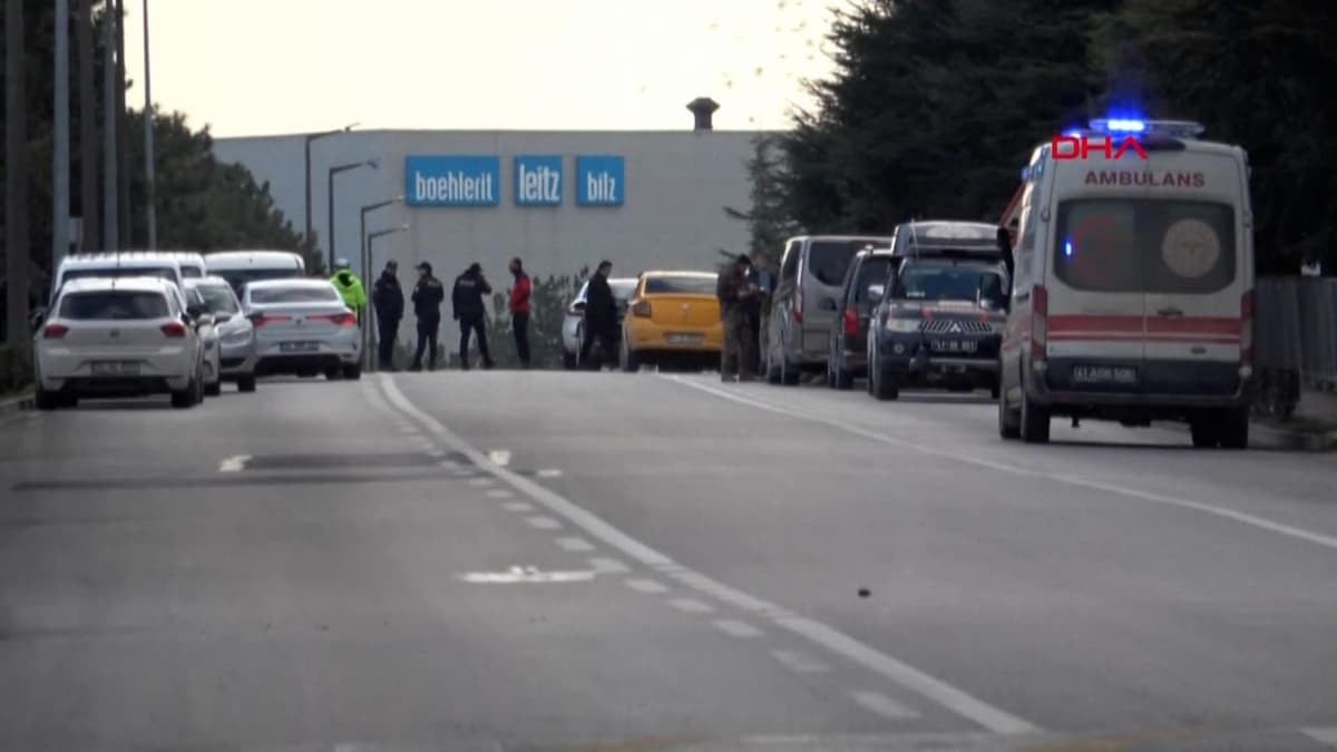 Il fermo immagine mostra polizia all'esterno della fabbrica, Istanbul (Ansa)