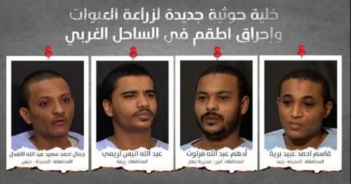 La cellula reclutata da un leader Houthi, un funzionario delle cellule che piazzano bombe, di nome Muhammad Ali Ali Hizam Al-Soudi, soprannominato Abu Moataz Al-Soudi, comprendeva 4 membri della popolazione del Governatorato di Hodeidah. I suoi componenti erano: Adham Ali Abdullah Fartout Al-Hasani, soprannominato Adham Al-Adani, Qasim Ahmed Obaid Beriah, Abdullah Anis Abdul-Malik e Qasim Barih.