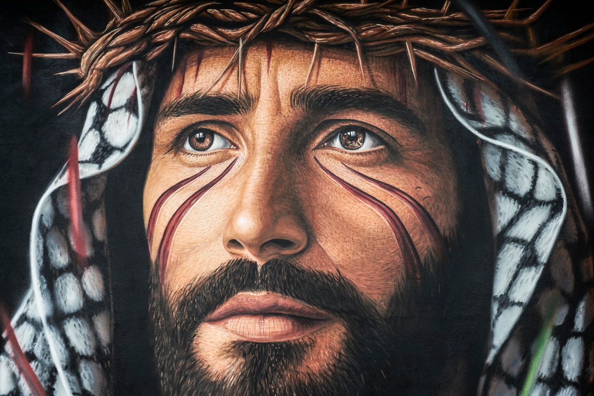 Gesù con la kefiah. È IL "Figlio dell'Uomo", nuova opera dello street artist Jorit (Foto Ansa) - Blitz Quotidiano