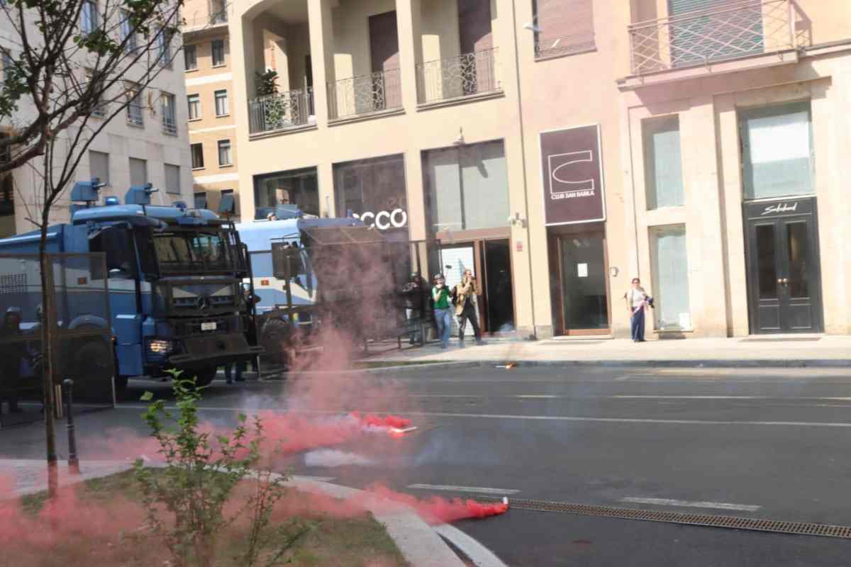 Tensioni a Milano tra antagonisti e forze dell’ordine durante il corteo dei centri sociali contro il raduno dei patrioti europei, organizzato dalla Lega, in piazza Duomo. In via Borgogna le forze dell’ordine hanno usato idranti contro i manifestanti. Gli antagonisti hanno lanciato petardi, fumogeni, bottiglie contro gli agenti, nel tentativo di forzare il blocco e arrivare in piazza Duomo. Dopo le tensioni con le forze dell’ordine in via Borgogna, i manifestanti hanno arretrato, imboccando via Visconti di Modrone e riprendendo il percorso autorizzato e dal corteo si sono alzati i cori “servi dello Stato” e “fuori i fascisti da Milano“.