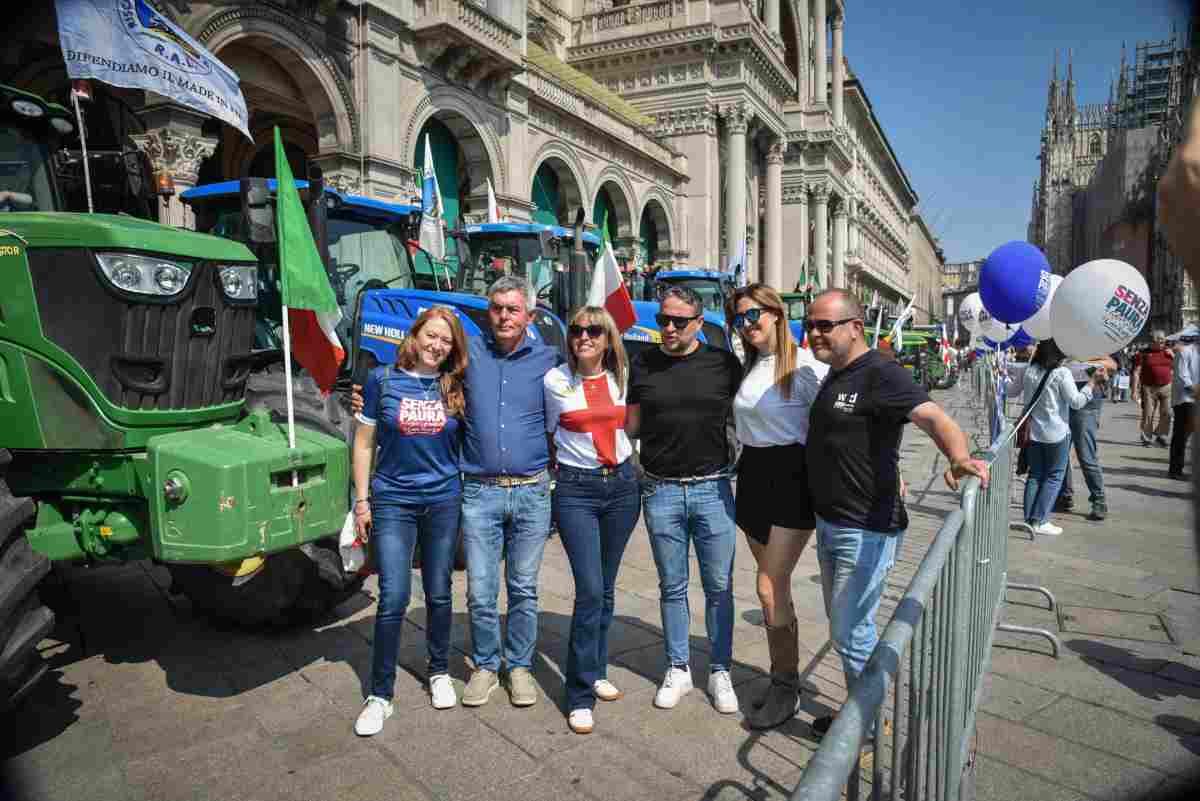 Il corteo promosso dai Patrioti europei e dalla Lega “Padroni a casa nostra” è invece partito da porta Venezia ed ha raggiunto piazza Duomo. In testa al corteo ha sfilato un trattore con la scritta, ‘Tuteliamo la nostra agricoltura e il Made in Italy”: subito dietro nelle prime file i sindaci della Lega e gli amministratori locali che hanno retto uno striscione con la scritta “Padroni a casa nostra” indossando anche una fascia con la stessa frase. In corteo bandiere tricolori, della Lega, con la croce rossa di San Giorgio, simbolo della città di Milano e con il leone di San Marco. Il corteo ha fatto lo stesso percorso della manifestazione nazionale che ogni anno si tiene per il 25 aprile. Colonna sonora tra gli altri, Max Pezzali, Renato Zero, Heater Parisi e Pupo.