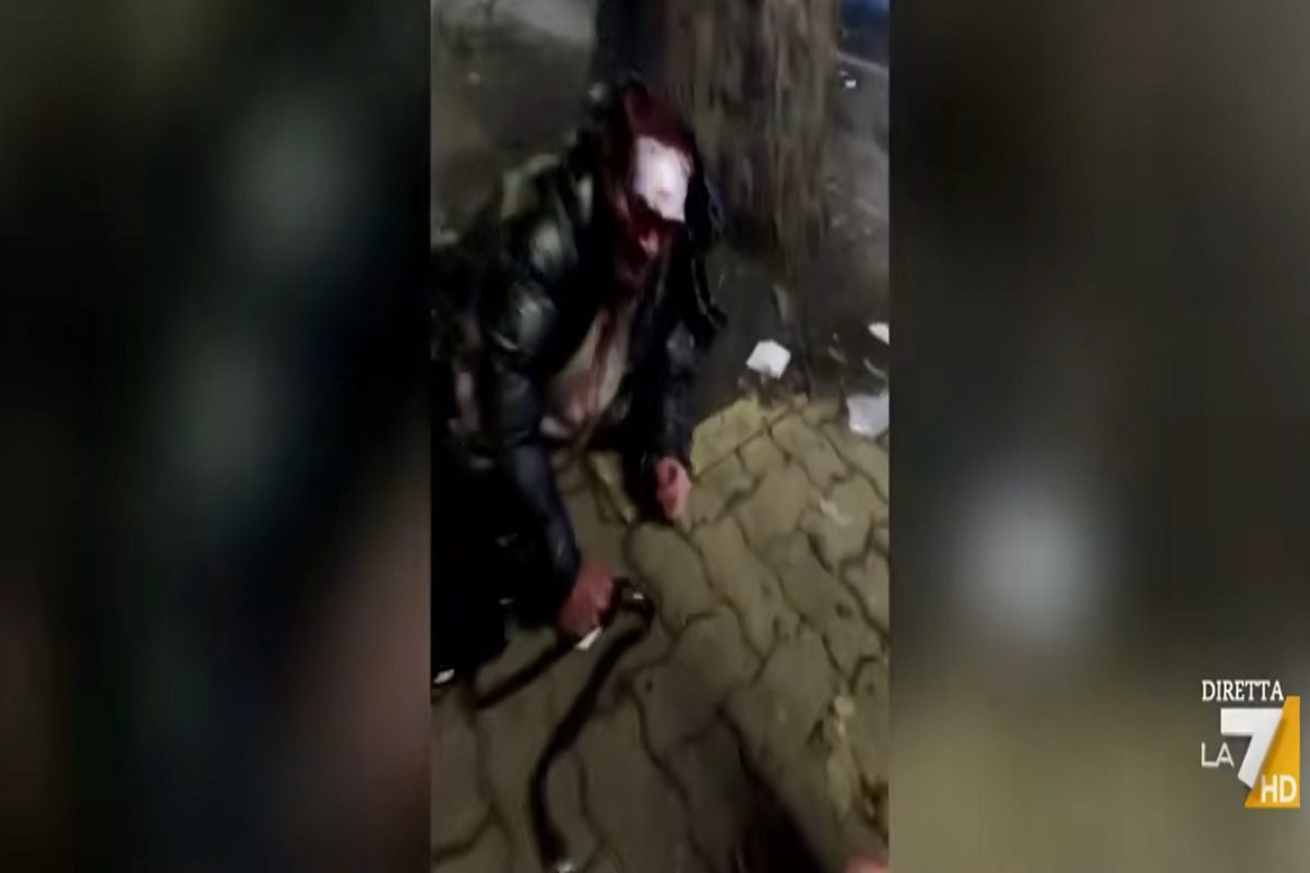 Il sessantenne picchiato dalla Polizia a Torino e lasciato in strada con il volto insanguinato presenta una querela per lesioni (foto tratta dal video de La7) - Blitz Quotidiano