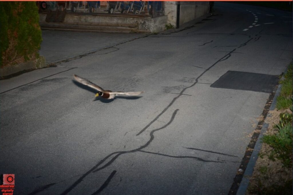 È successo davvero: un germano reale è stato “multato” per eccesso di velocità in una zona urbana di Koniz, cittadina nei pressi di Berna, in Svizzera. Il curioso episodio risale al 13 aprile, quando un autovelox ha immortalato il volatile mentre sfrecciava a 52 chilometri orari in un tratto di strada dove il limite consentito è di 30 km/h. La foto del pennuto “fuorilegge” è stata pubblicata sui social direttamente dal comune di Koniz, che ha colto l’occasione per ironizzare sull’accaduto, scatenando l’ilarità degli utenti. Alcuni si sono domandati ironicamente se il pennuto dovrà pagare la sanzione o se goda di una sorta di immunità naturale.