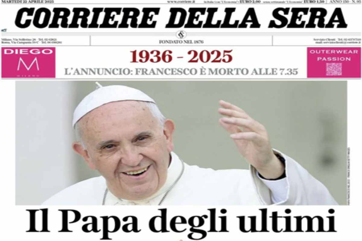 La notizia del giorno in apertura sui quotidiani è quella relativa alla morte di Papa Francesco, avvenuta ieri mattina per un ictus cerebrale seguito dal coma e da un collasso cardiocircolatorio. “Era Francesco”, titola La Stampa. “Il Papa degli ultimi”, è la prima pagina del Corriere della Sera. “Il Papa che ha terremotato la Chiesa”, titola invece La Verità.