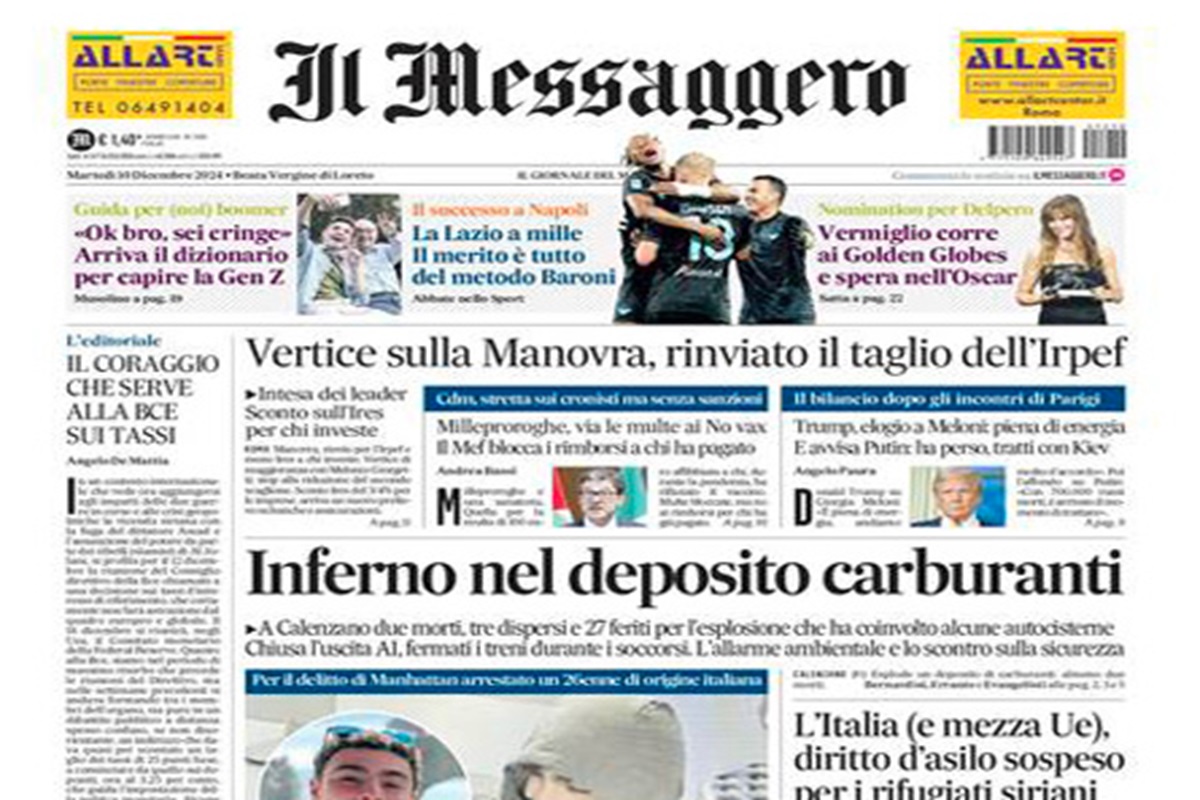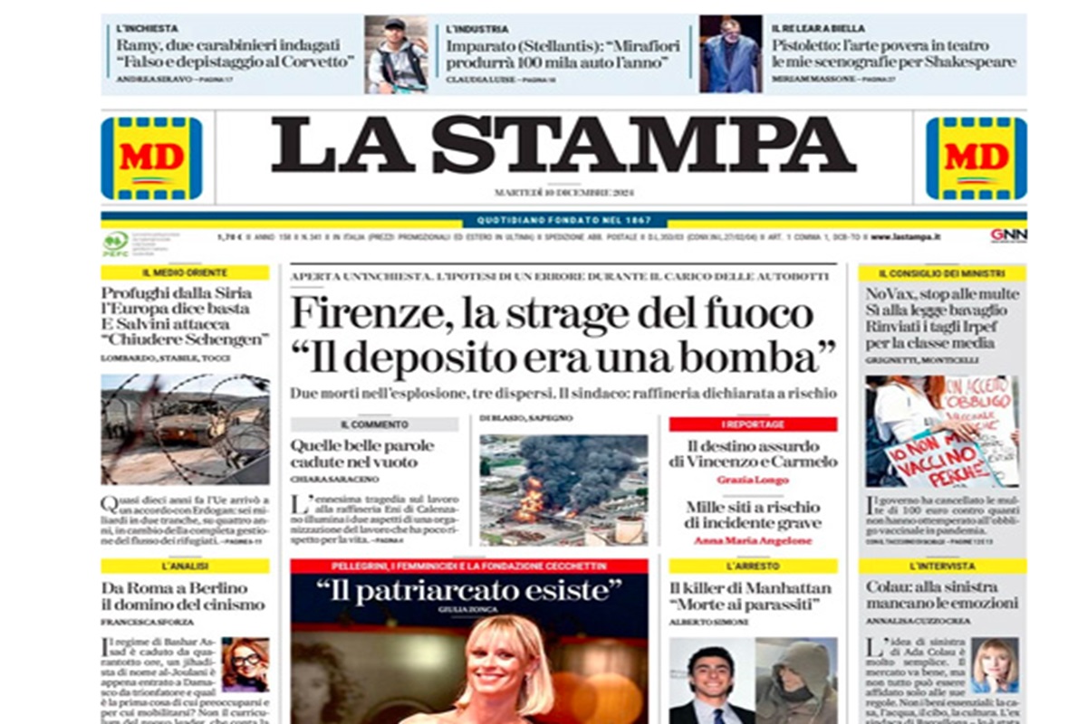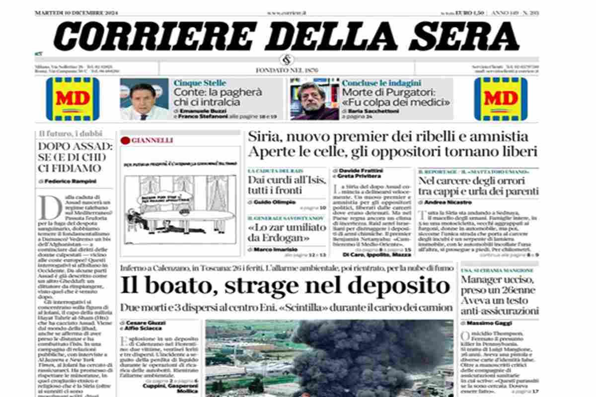 Home » L’EDICOLA, la Repubblica: “Strage sul lavoro”. La Stampa: “La strage del fuoco”. L’editoriale di Federico Rampini: “L’Occidente e il dopo Assad: di chi fidarsi?”