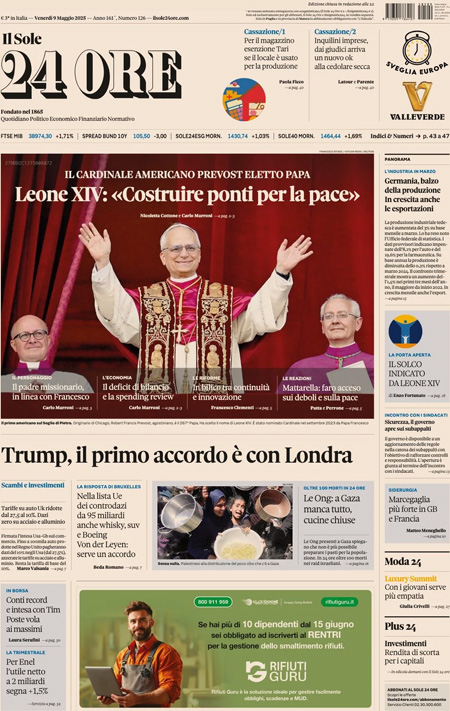 “Leone XIV: Costruire ponti per la pace” (Il Sole 24 Ore).