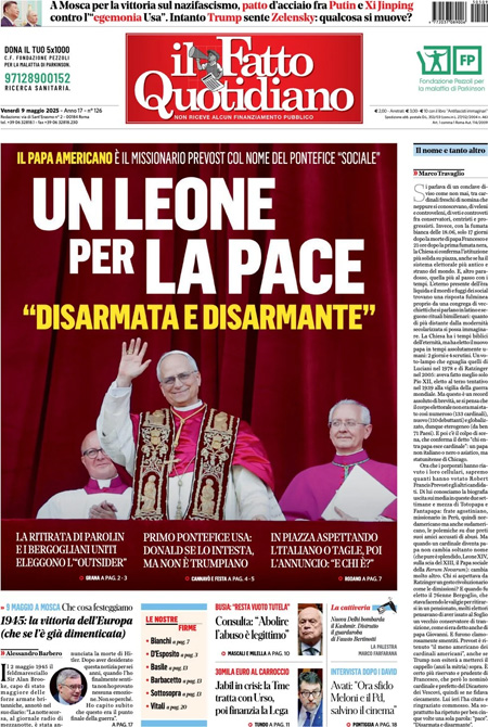 “Il nome e tanto altro”. L’editoriale di Marco Travaglio: “Si parlava di un conclave diviso come non mai, tra cardinali freschi di nomina che neppure si conoscevano, di veleni e controveleni, di veti e controveti fra conservatori, centristi e progressisti. Invece, con la fumata bianca delle 18.06, solo 17 giorni dopo la morte di papa Francesco e 21 ore dopo la prima fumata nera…”.