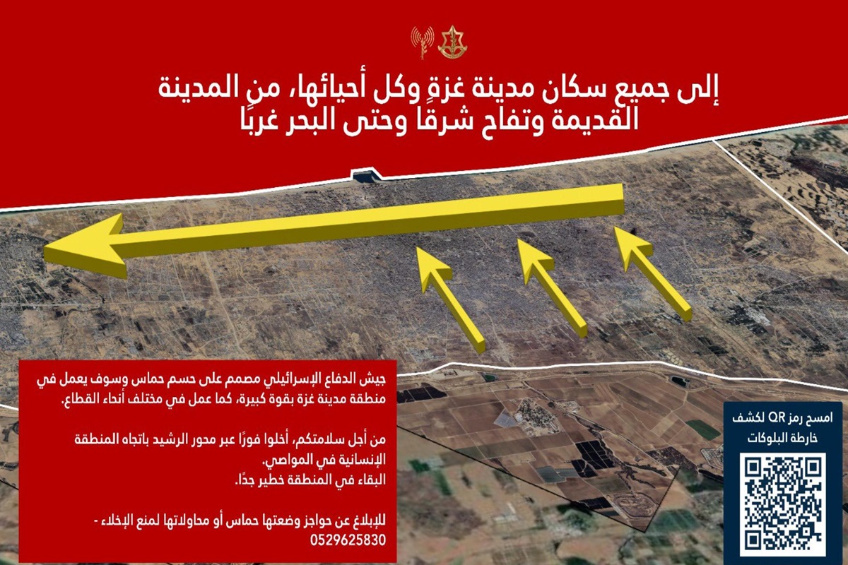 Il volantino diffuso dall'esercito israeliano (Foto Ansa)