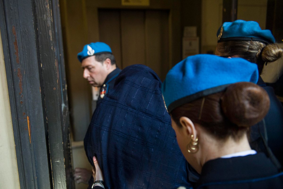 La madre di Saman Abbas mentre entra in Aula (Foto Ansa)