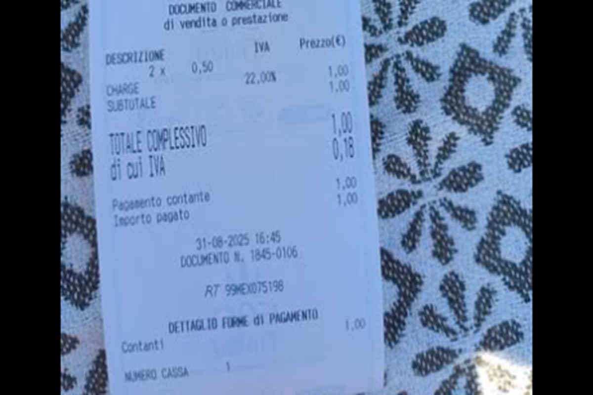 “Ho chiesto allo stabilimento di ricaricare il telefono perché completamente scarico”, ha scritto la donna. Le è stato risposto che “per 30 minuti erano 50 centesimi”. La cliente allora è andata a riprendere il suo dispositivo dopo “dopo 42 minuti”, trovando uno scontrino da un euro: “Credo che con questo abbiamo toccato il fondo”, ha commentato.