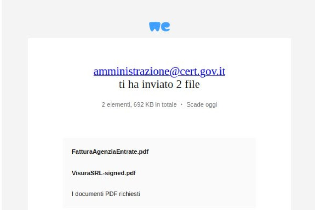 La truffa del finto WeTransfer dall'Agenzia delle Entrate, cosa non fare e come difendersi (foto dal web) - Blitz quotidiano