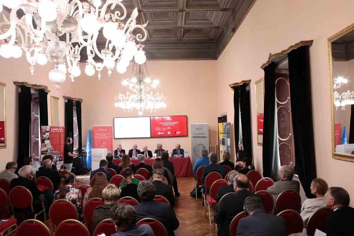 La giornata si è aperta con la presentazione italiana dei volumi “Noonomia” di Sergey Bodrunov e “Strategizzare le trasformazioni sociali: Noonomia, Sapere, Tecnologia” di Vladimir Kvint e Sergey Bodrunov, entrambi editi Sandro Teti Editore. La teoria della Noonomia – che si pone come alternativa all’attuale società economica attraverso un approccio non economico basato sulla conoscenza, la cultura e il soddisfacimento dei bisogni umani concreti -, è il risultato di molti anni di lavoro di ricerca scientifica di Bodrunov, economista, membro dell’Accademia russa delle Scienze, rettore dell’Istituto Sergej Witte per il nuovo sviluppo industriale di San Pietroburgo, presidente della Libera Società Economica Russa.