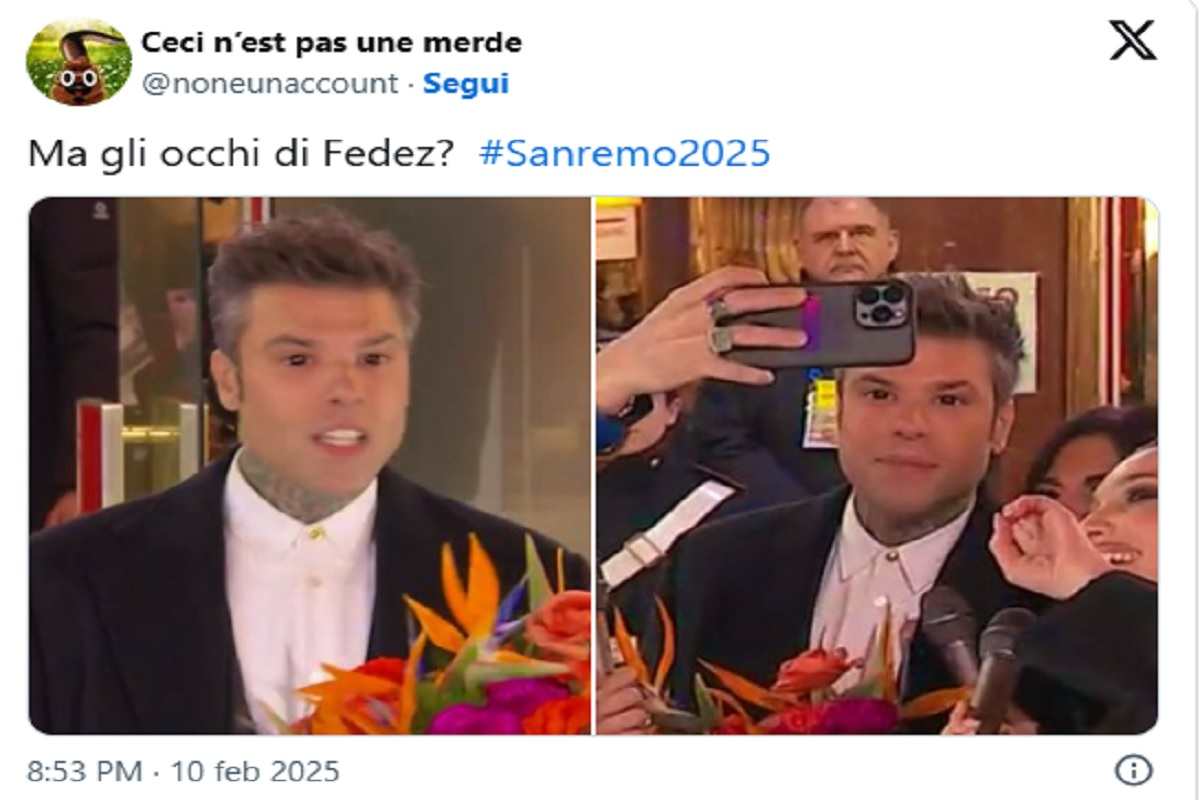 Fedez e il caso degli occhi neri dilatati sul red carpet di Sanremo (foto X) - Blitz Quotidiano