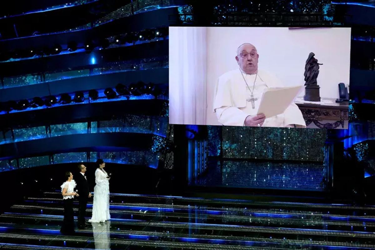 Papa Francesco e il video messaggio trasmesso al festival di Sanremo (Foto Ansa) - Blitz Quotidiano