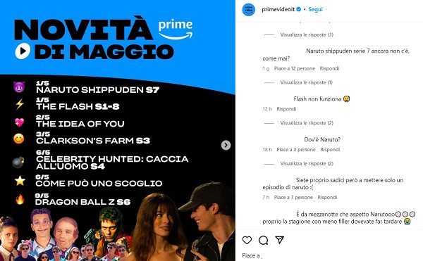 Il 1° maggio era una data molto importante per i fan di Naruto Shippuden, poiché era il giorno in cui Prime Video aveva dichiarato l’uscita sulla piattaforma della settima stagione della serie. Tuttavia, le promesse sono state disattese, il 1 maggio non è uscita la serie e i fan sono rimasti molto delusi. Anche peggio, quando il pubblico ha cercato risposte sui social media, il team di comunicazione di Prime Video ha offerto solo risposte vaghe come “uscirà in giornata”, senza fornire alcuna spiegazione concreta per il ritardo.