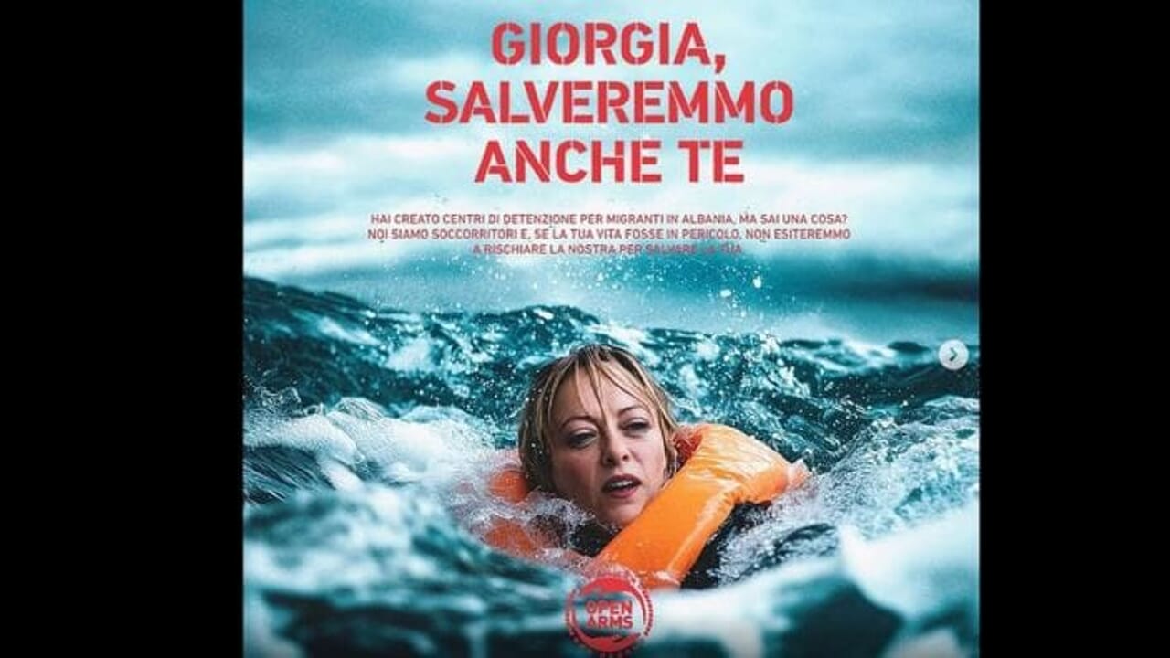 Nella foto dedicata a Giorgia Meloni, la didascalia recita: “Hai creato centri di detenzione per migranti in Albania, ma sai una cosa? Noi siamo soccorritori e se la tua vita fosse in pericolo non esiteremmo a rischiare la nostra per salvarti.”