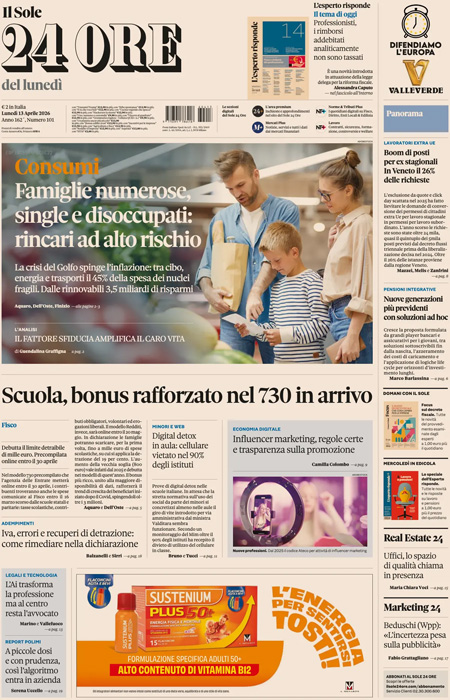 “Famiglie numerose, single e disoccupati: rincari ad alto rischio” (Il Sole 24 Ore).