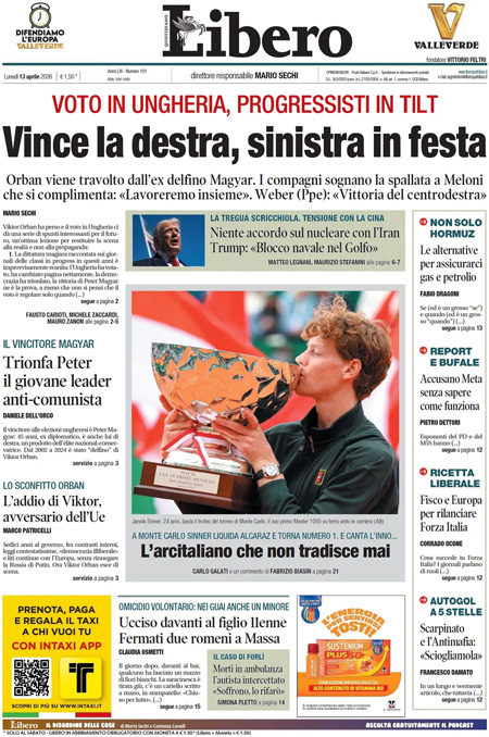 “La sbornia ungherese che illude i compagni”, di Mario Sechi: “Viktor Orban ha perso e il voto in Ungheria ci dà una serie di spunti interessanti per il futuro, un’ottima lezione per restituire la scena alla realtà e non alla propaganda. La dittatura magiara raccontata sui giornali delle classi in progress in questi anni è improvvisamente svanita: l’Ungheria ha votato, ha cambiato pagina nettamente, la democrazia ha trionfato, la vittoria di Peter Magyar ne è la prova, a meno che non si pensi che il voto è regolare solo quando vince la sinistra”.