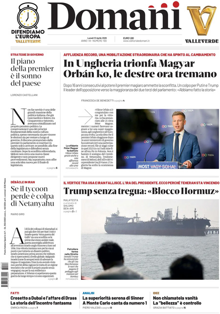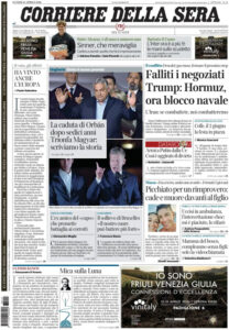 “L’impennata d’orgoglio ungherese”, di Paolo Valentino: “Il nostro lungo incubo europeo è finito. Dopo sedici anni nei quali ha trasformato l’Ungheria in una «democrazia illiberale» nel cuore d’Europa, Viktor Orbán subisce una sconfitta elettorale devastante e senza appello. A Budapest vince Péter Magyar, l’ussaro che ha scoperchiato il tetto dell’edificio orbaniano, mostrandone crepe, vizi e segreti inconfessabili. Sul Danubio soffia il desiderio di cambiamento di un Paese stanco della satrapia corrotta e asservita del tribuno sovranista”.