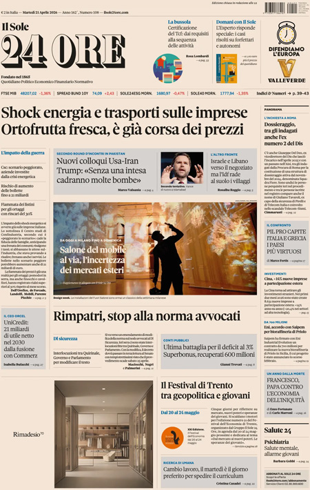 “Shock energia e trasporti sulle imprese. Ortofrutta fresca, è già corsa dei prezzi” (Il Sole 24 Ore).