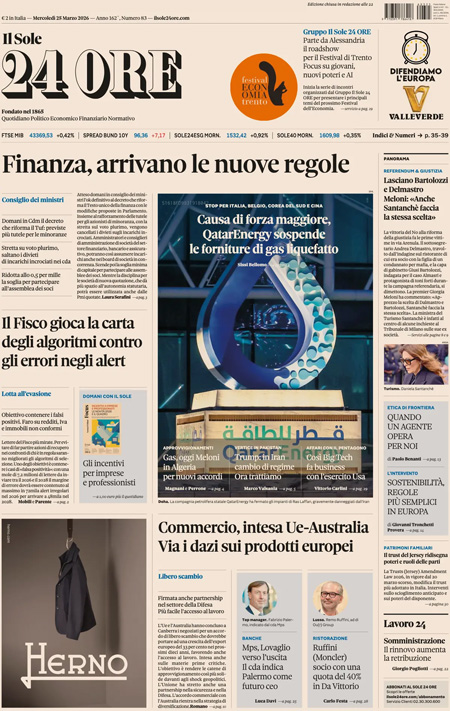 “Finanza, arrivano le nuove regole” (Il Sole 24 Ore).