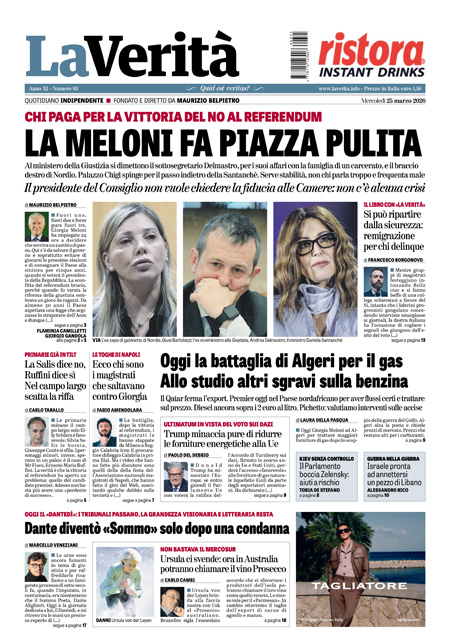 “La meloni fa piazza pulita” (La Verità).