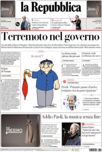 “Terremoto nel governo” (La Repubblica).