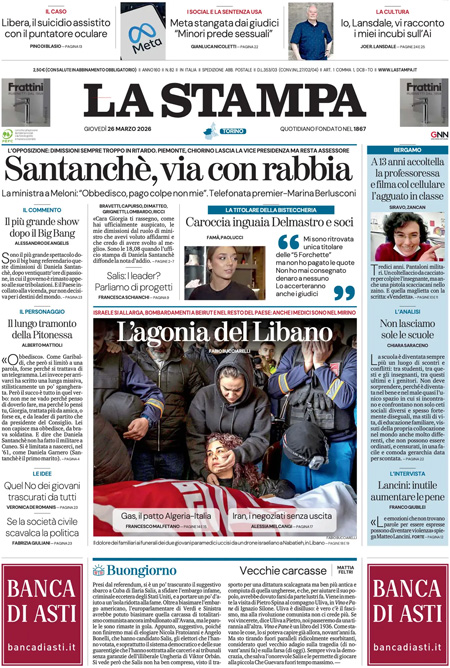 La rassegna stampa e le prime pagine dei giornali di oggi 26 marzo - Blitz Quotidiano