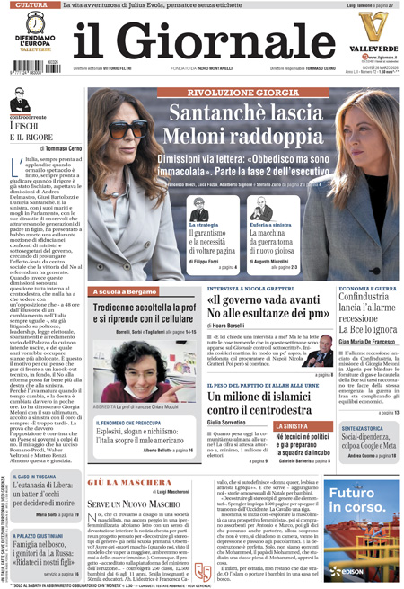 “Santanchè lascia, Meloni raddoppia” (Il Giornale).