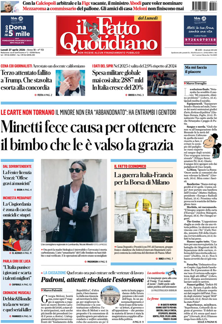Home » La rassegna stampa e le prime pagine dei giornali di oggi 27 aprile
