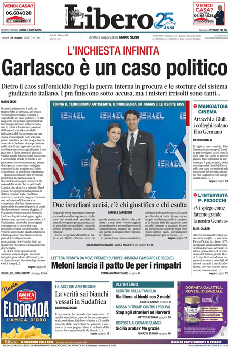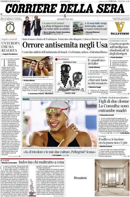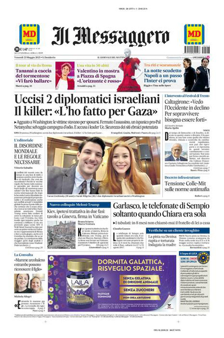 Le principali testate giornalistiche italiane oggi aprono con la notizia dell’uccisione di due funzionari dell’ambasciata israeliana a Washington, avvenuta per mano di un uomo armato. Secondo le prime ricostruzioni, il movente dell’attacco sarebbe un gesto di vendetta per le recenti operazioni militari condotte da Israele nella Striscia di Gaza. L’episodio ha immediatamente sollevato forti preoccupazioni a livello internazionale, sia per la sicurezza del personale diplomatico sia per il crescente clima di tensione geopolitica.