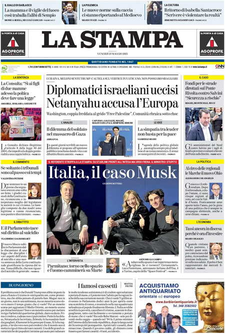 “Diplomatici israeliani uccisi. Netanyahu accusa l’Europa”. (La Stampa)