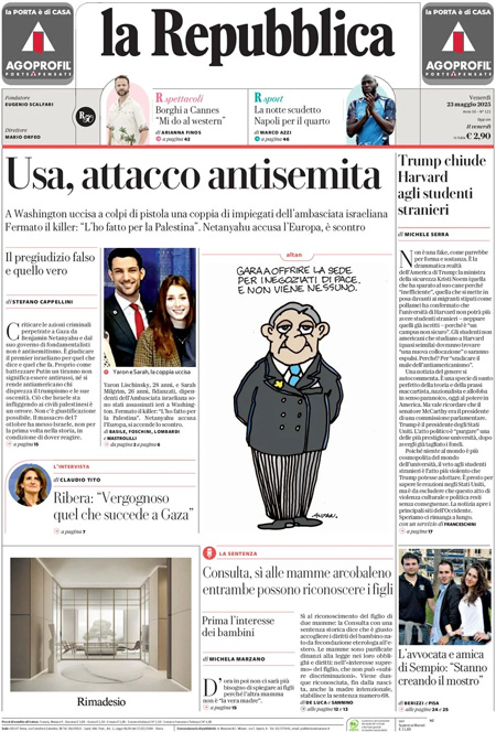 “Uccisi 2 diplomatici israeliani. Il killer: “L’ho fatto per Gaza”.” (Il Messaggero)