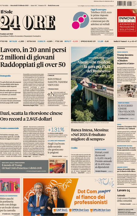 “Lavoro, in 20 anni persi 2 milioni di giovani. Raddoppiati gli over 50” (Il Sole 24 Ore).