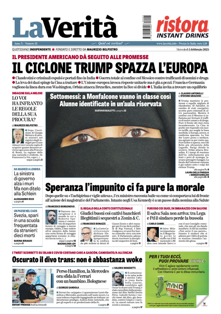 “Il ciclone Trump spazza l’Europa” (La Verità).