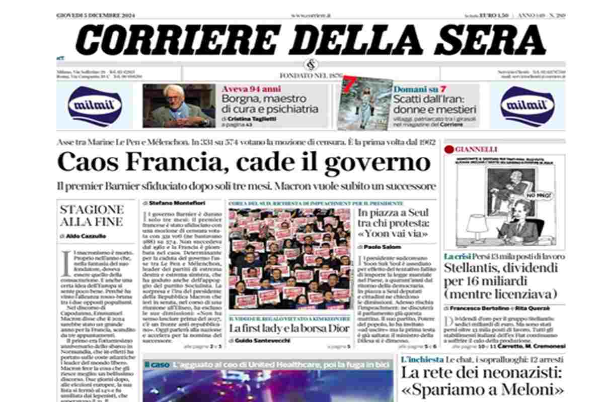 “Caos Francia, cade il governo”. (Il Corriere della Sera)