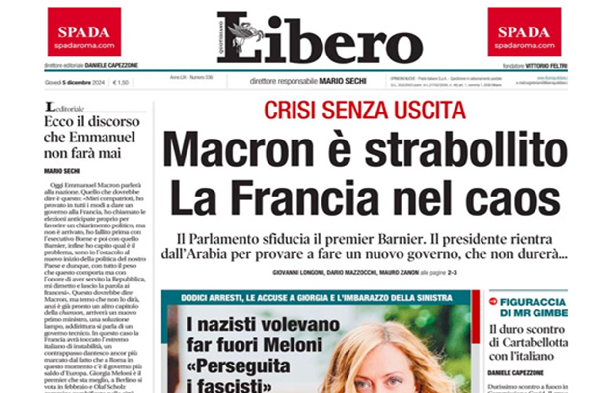 “Macron è strabollito. La Francia nel caos”. (Libero)