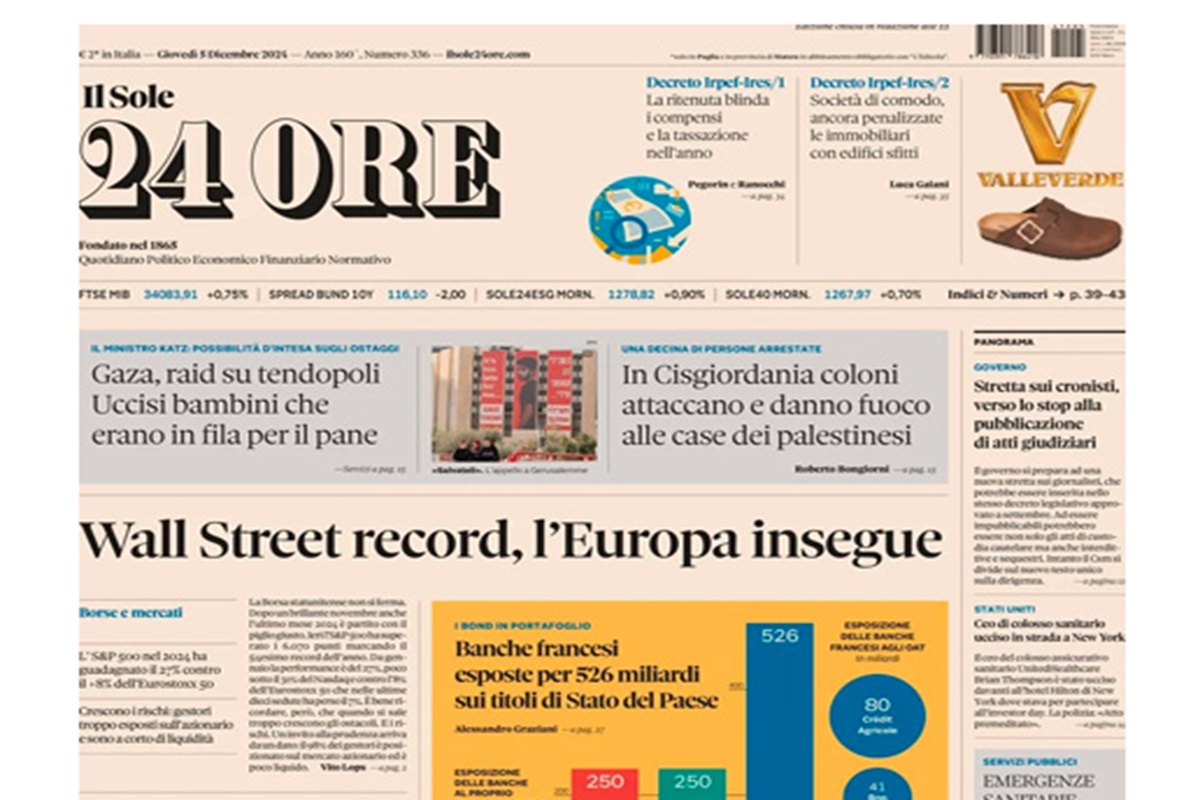 “Wall Street record, l’Europa insegue”. (Il Sole 24 Ore)