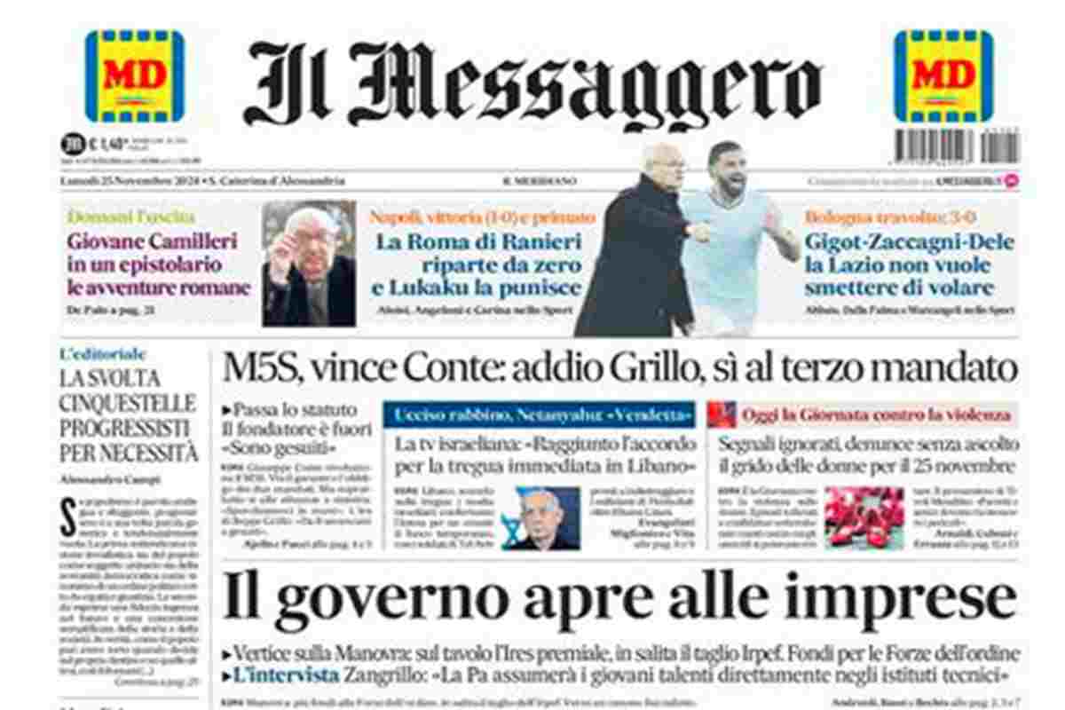 “M5s, vince Conte: addio Grillo, sì al terzo mandato”. (Il Messaggero)