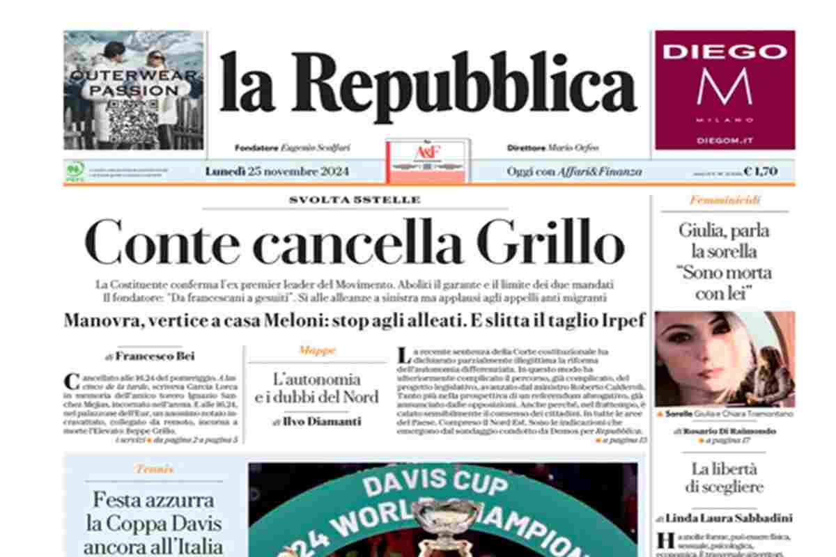 “Svolta 5 Stelle. Conte cancella Grillo”. (La Repubblica)
