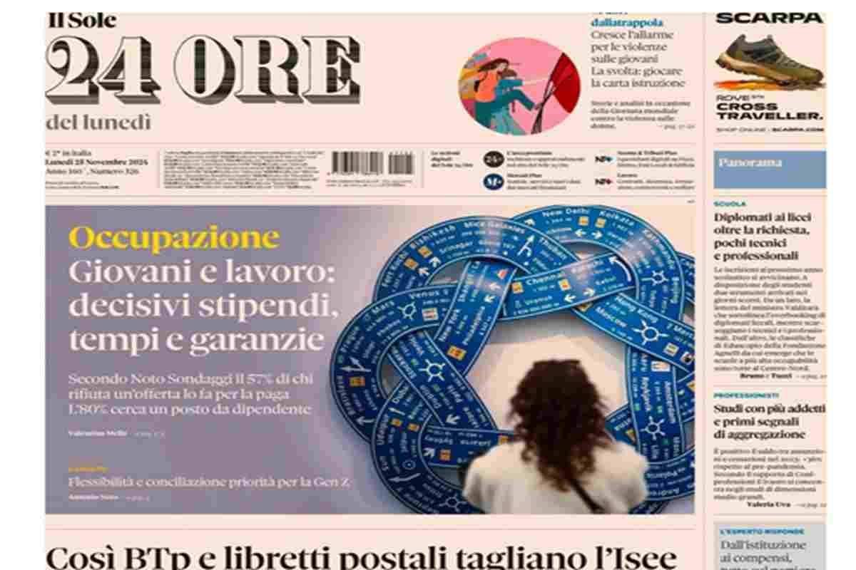 “Occupazione, giovani e lavoro. Decisivi stipendi, tempi e garanzie”. (Il Sole 24 Ore)