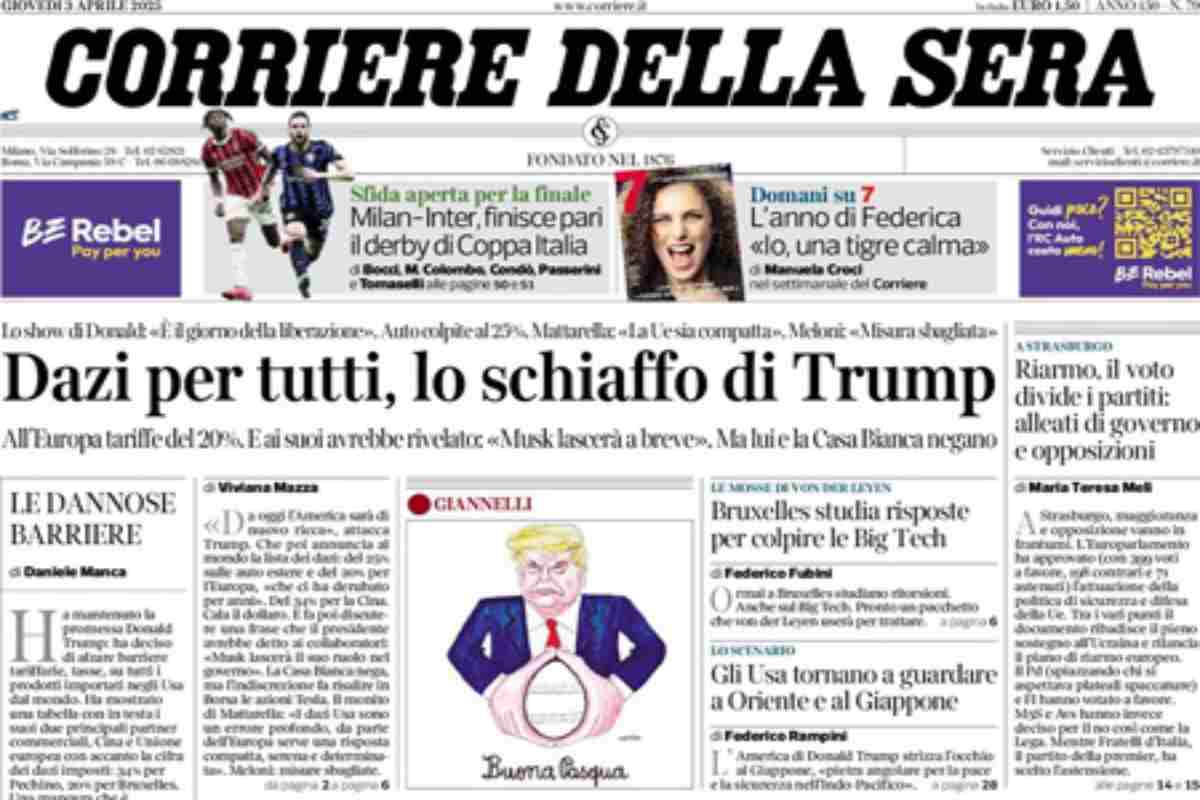 L'EDICOLA, Il Corriere: "Dazi per tutti, lo schiaffo di Trump". La Stampa: "Dazi Usa, cambia il mondo". Il Fatto: "Riarmo: destre divise in tre e Pd unito sul Sì" - Blitz Quotidiano