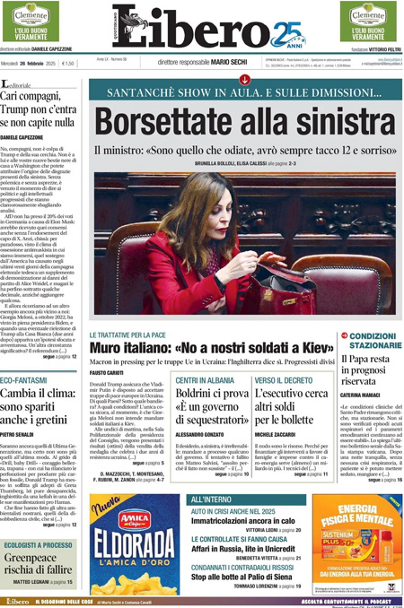 L'EDICOLA, Il Corriere: "Difesa, spinta dell'Europa". Repubblica: "La destra salva Santanchè". Libero: "Borsettate alla sinistra" - Blitz Quotidiano