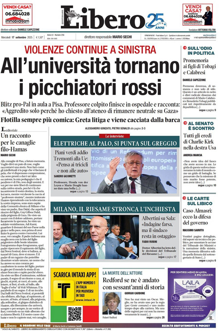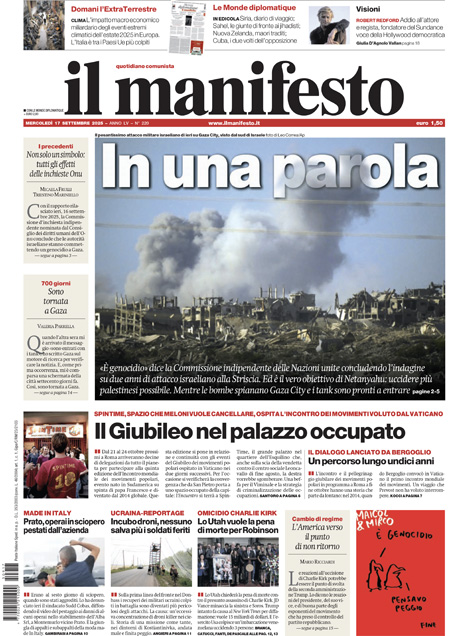“Il Papa: Prego per Kirk e la sua famiglia” (Libero).