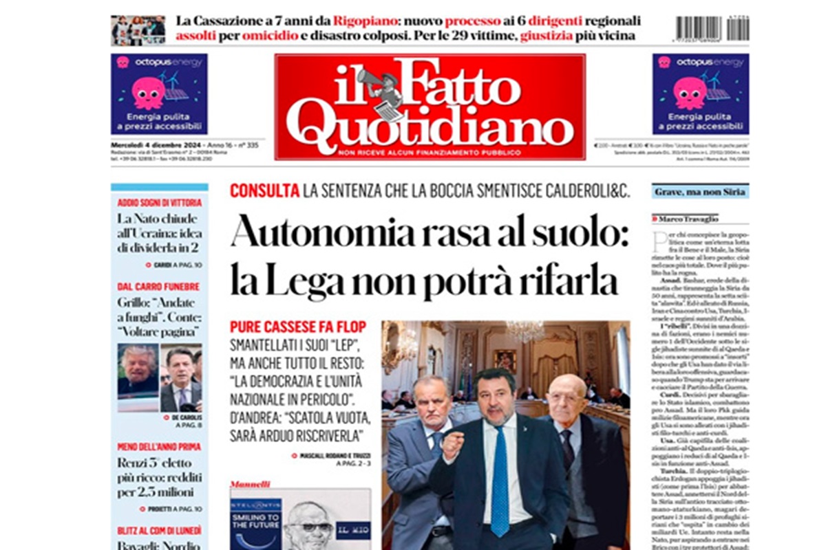 “Autonomia rasa al suolo: la Lega non potrà rifarla”. (Il Fatto Quotidiano)