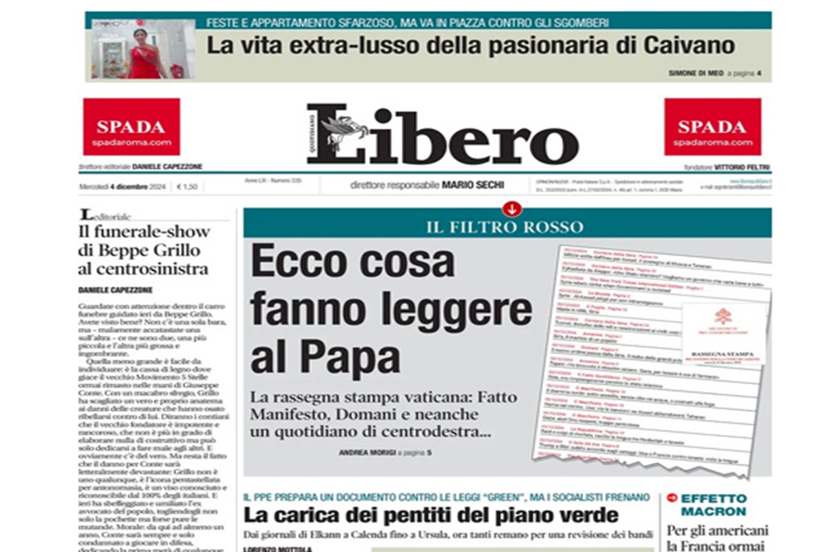 “Ecco cosa fanno leggere al Papa”. (Libero)