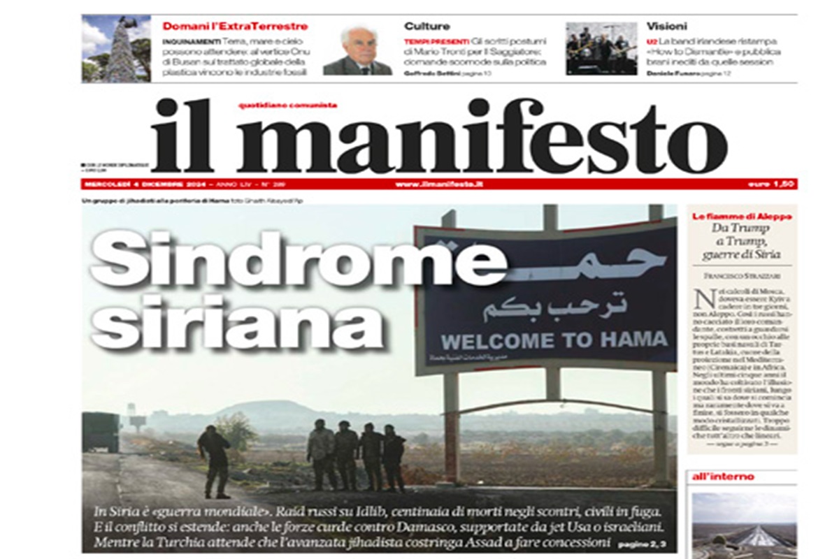“Grave, ma non Siria”. L’editoriale di Marco Travaglio: “Per chi concepisce la geopolitica come un’eterna lotta fra il Bene e il Male, la Siria rimette le cose al loro posto: cioè nel caos più totale. Dove il più pulito ha la rogna. Assad. Bashar, erede della dinastia che tiranneggia la Siria da 50 anni, rappresenta la setta sciita “alawita”. Ed è alleato di Russia, Iran e Cina contro Usa, Turchia, Israele e regimi sunniti d’Arabia”.