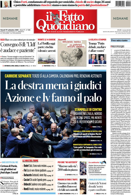 “La destra mena i giudici. Azione e Iv fanno il palo” (Il Fatto Quotidiano).
