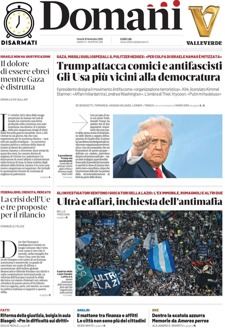 “Free mica tanto”. L’editoriale di Marco Travaglio: “La morte di Charlie Kirk avrebbe potuto non essere inutile. Invece lo sarà, perché i trumpiani usano il lutto per scatenare la caccia alle streghe contro chiunque manifesti idee altrettanto estreme, ma opposte. Così il martirio di un paladino del free speech diventa il pretesto per rendere lo speech ancor meno free…”.